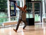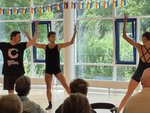 Er kreierte mit zwei seiner Tänzer*innen ein neues „Pas de deux“. Dabei war das Publikum beim Einstudieren der Choreografie gefragt. Die Tänzer führten ihre Bewegungen nur aus, wenn das Publikum die Figuren zugerufen hatte. Vergaß das Publikum eine Bewegung, drohte Eric scherzhaft den Schülern mit Hausaufgaben und den Bewohnern damit, dass es nichts zu essen gebe. Es funktionierte einwandfrei.