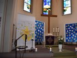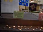 Mitarbeitende lasen die von Ihnen geschriebenen Gedenksätze mit Namensnennung der Verstorbenen vor. Im Anschluss zündeten die Anwesenden Kerzen an und stellten diese zum Gedenken vor den Altar. Eingerahmt wurde der Gottesdienst von gemeinsam gesungenen Liedern, von einem Liedvortrag eines Mitarbeiters und Fürbitten für Bewohner, Angehörige und für unsere Mitarbeitenden. Beim Verlassen der Kirche nahmen Angehörige die Namenssterne Ihrer Verstorbenen mit.