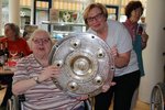 Als die VfB-Gäste die Cafeteria, war das Staunen im Parkheim tatsächlich groß. Neben Christine Potnar (Leiterin des Bereichs Gesellschaftliche Verantwortung) und Dr. Florian Gauß (Leiter der historischen Abteilung) war auch die VfB-Fußballlegende Hansi Müller vor Ort. 1980 wurde er mit der Nationalmannschaft Europameister, 1982 Vizeweltmeister.