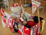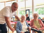 Am 12. Juni begrüßten die Bewohner*innen und Mitarbeitenden den VfB im Parkheim – für einen gemeinsamen UNVERGESSEN-Erinnerungsnachmittag. Dazu verwandelten sie im Vorfeld die Cafeteria der Einrichtung in eine VfB-Fanzone. In einem Leiterwagen wurden die von Bewohner*innen und Mitarbeitenden zur Verfügung gestellten VfB-Fanartikel gesammelt – Maskottchen, Schals und Wimpel. Alles was man für den VfB-Stadionbesuch braucht (und noch mehr), war vorhanden.
